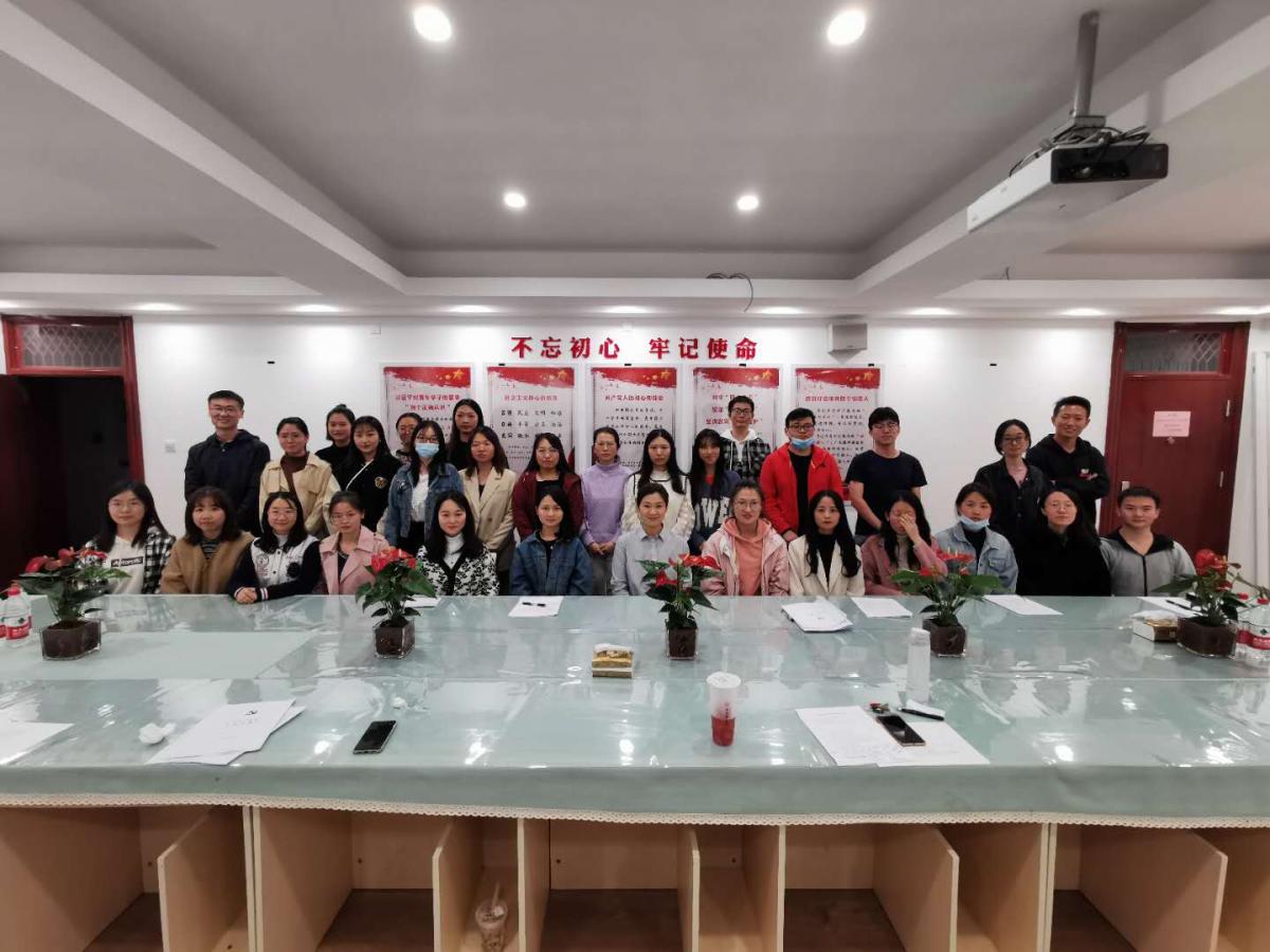 研究生党支部全体成员和发展对象,贺玉英作为组织员列席本次会议。此次大会由支部书记王洋老师主持。大会的议题是讨论关于接收石珊、王俐、钱正来、郭星涛、刘秀荣、韩竹、纪佳欣、胡耀坤、付楠楠、王焕焕、陈宇恬11位同志为预备党员的问题。