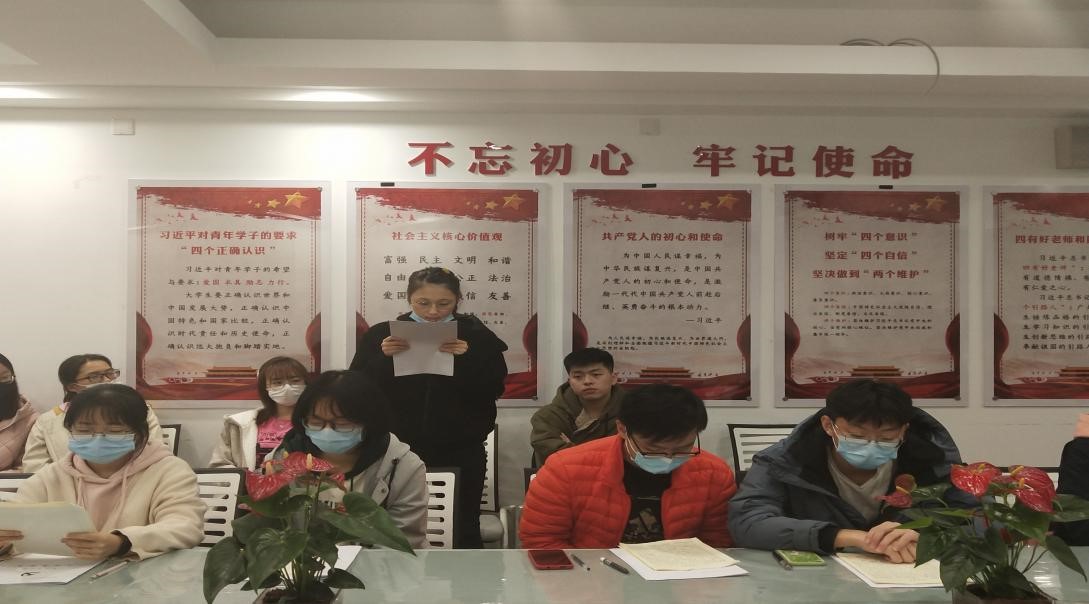 410召开党员发展会。此次会议由党支部副书记刘怡婷主持,支部书记陈霄英、组织员贺玉英老师列席会议。支部全体党员、预备党员和发展对象到场。