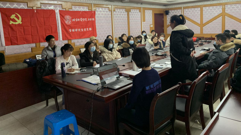 专硕研究生党支部十一月份理论学习。贺玉英老师作为组织员列席会议。