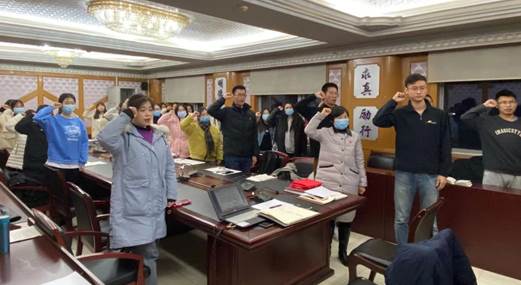 最后,人资学生第一党支部书记董海辰领誓,支部全体成员面向党旗庄严宣誓。此次会议严格按照各项程序执行,在为党组织输入了新鲜血液、注入了新活力的同时,也强化了党员的角色意识,增强了党员的责任感和使命感。
