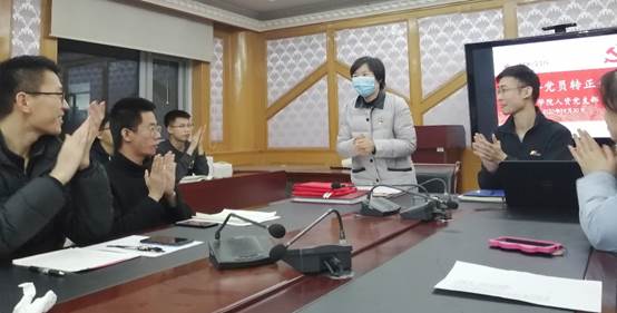 接着,九名预备党员宣读转正申请书,汇报了自己在预备党员期间的思想以及学习情况。预备党员宣读结束,与会党员充分讨论并发表意见。经过十二名正式党员无记名投票、唱票,九名预备党员一致通过,转为正式党员,由支部书记董海辰宣读结果,通过支部大会决议。