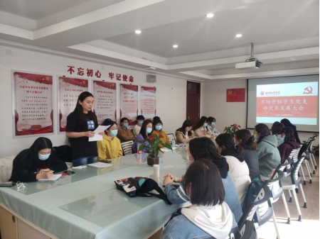 410会议室召开了党员发展大会,讨论2021年上半年拟发展对象转为预备党员事宜。本次会议由党支部书记刘娜老师主持,支部全体党员参加会议。