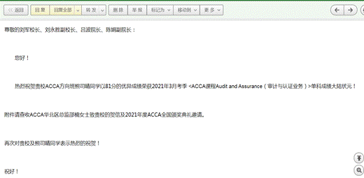 2018级会计学(ACCA)方向班熊司晴同学以81分荣获该课程中国内地单科第一名,这是成人电视