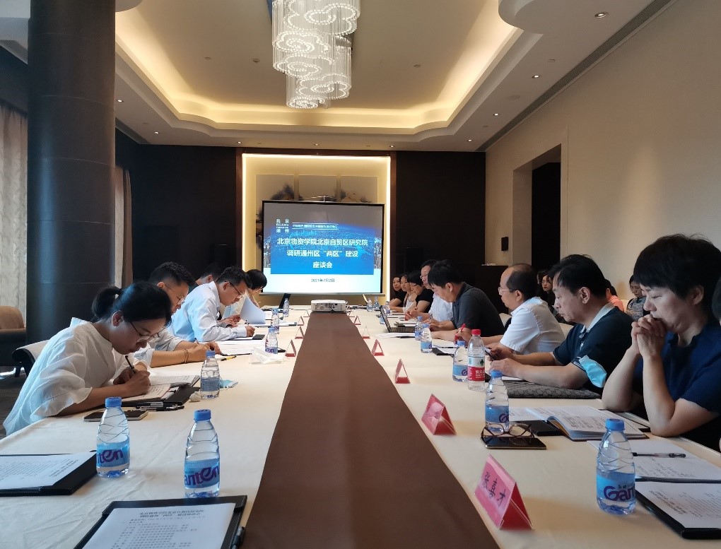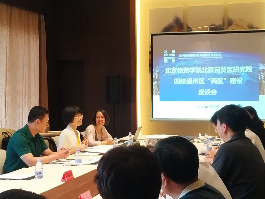 参观结束后,学校调研团队一行同通州区两区办负责同志进行了座谈交流。车欣薇副主任详细介绍了副中心两区建设背景、工作机制、取得的成就及当前的工作安排。科研处处长王成林教授结合学校十四五规划从学校顶层设计的角度介绍了学校对自贸区建设工作的总体规划,包括设立专门指南科研项目深入研究两区建设关键问题,培育专门的团队聚焦该领域进行深入研究,积极推动包括自贸区研究院等高水平科研平台的建设,同时积极推动教师和学生通过挂职锻炼、专业实践等方式参与通州区两区建设,参加通州区的服贸会专题活动,并希望以两区办为平台,积极对接入区企业,开展科学研究、企业培训、学生就业等多方面的合作。