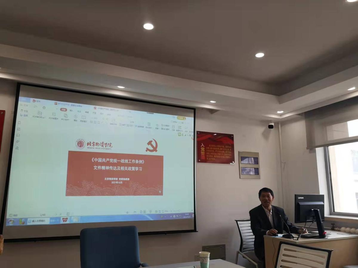 党委书记魏国辰就《中国共产党统一战线工作条例》精神进行了传达及学习。魏书记带领与会人员认真阅读并学习《条例》各个章则,重点学习新时代统一战线工作的指导思想、主要任务和基本原则,学习掌握《条例》修订的重要意义和主要特点。通过学习,与会人员认识到了《条例》的修订和实施,对于巩固和发展最广泛的爱国统一战线,为全面建设社会主义现代化国家、实现中华民族伟大复兴的中国梦提供广泛力量支持所具有的重要意义。