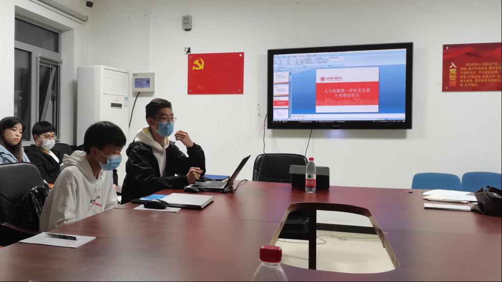 人力资源管理学生第一党支部在科研楼402召开了10月的理论学习会。会议由人资学生第一党支部书记董海辰老师主持,学生第一党支部全体参加。