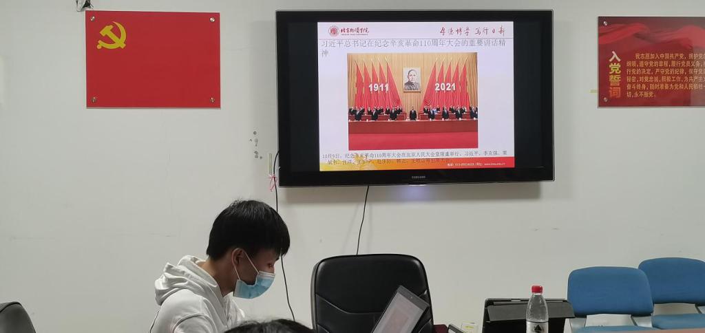 首先由人资学生第一党支部支委徐海洋同学分享学习“ 习近平总书记在纪念辛亥革命110周年大会的重要讲话精神”成果,徐海洋同学通过本次学习材料为支部同学讲解学习党史的重要性和关键性,通过重点讲解金句与重要精神,让同学们对本次讲话都产生深刻印象。发出“作为大学生,应该认真学习领会习近平总书记的重要讲话精神,学习好专业知识,以史为鉴,为中华民族伟大复兴贡献力量”的感叹,营造了良好的党史的学习氛围,达到理论学习效果。