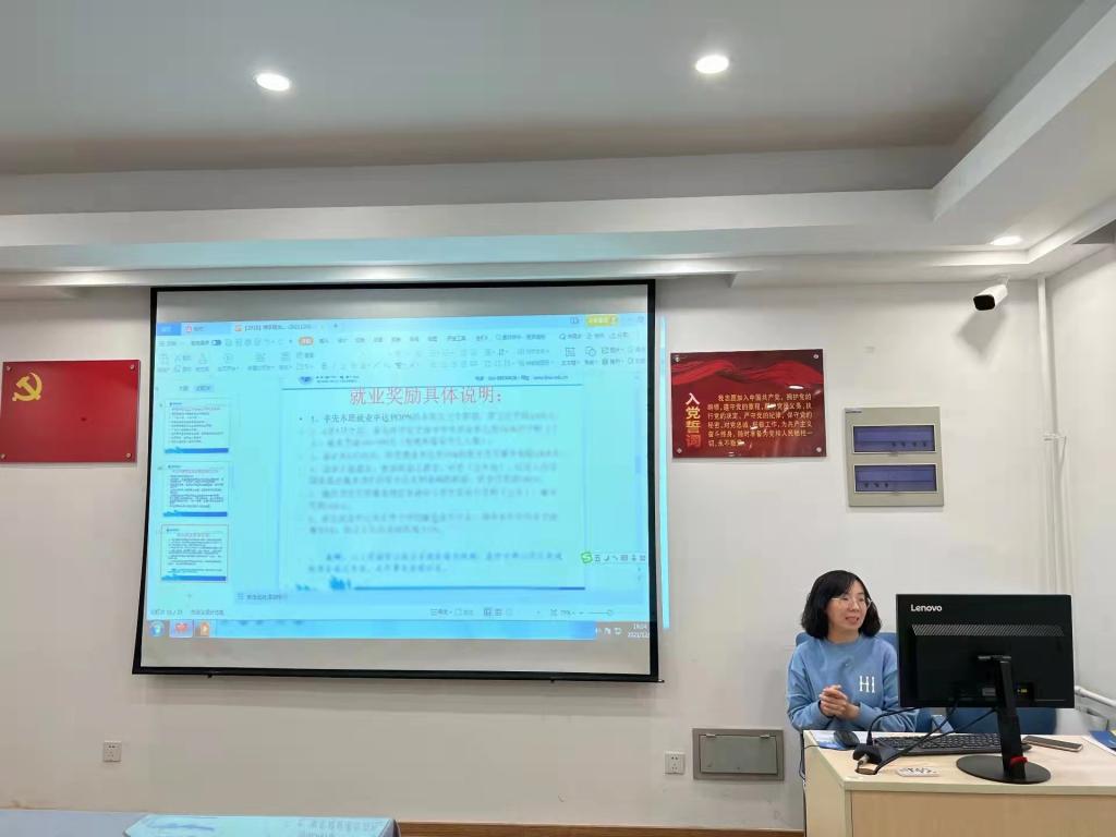 就业工作考核办法》进行详细解读,介绍了以往就业工作的重点、难点环节,重点介绍了就业工作的奖惩政策以及学院各专业包干帮扶情况,并逐一解答了班主任们的提问。她提出,学校和学院高度重视毕业生就业工作,希望班主任老师能够和学院通力合作,落实好毕业生的就业问题,保证毕业生能够走好大学生活的最后一步。