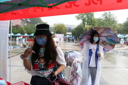 新生保驾护航,在雨中提供最温暖志愿帮扶,让寂静许久的校园,再次响起了同学们的欢声笑语。