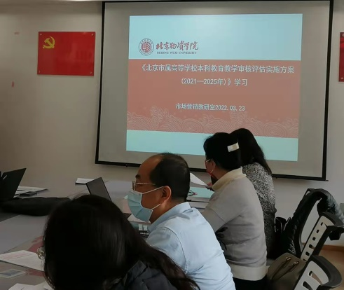 3月23日下午,市场营销系全体教师举行了例行教研活动月会,本次月会的主题为“学习《北京市属普通高等学校本科教育教学审核评估实施方案(2021-2025年)》”。