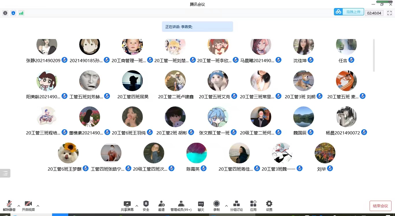 党委书记魏国辰、院长吕波、副院长李燕荣、党委副书记陈霄英和专业负责人唐华茂、刘华、系主任孙静、武淑平、张庆红以及教授代表、班主任老师出席了本次会议,2020级工商管理大类的全体同学参加了本次会议。会议由教学秘书韩卫英主持。