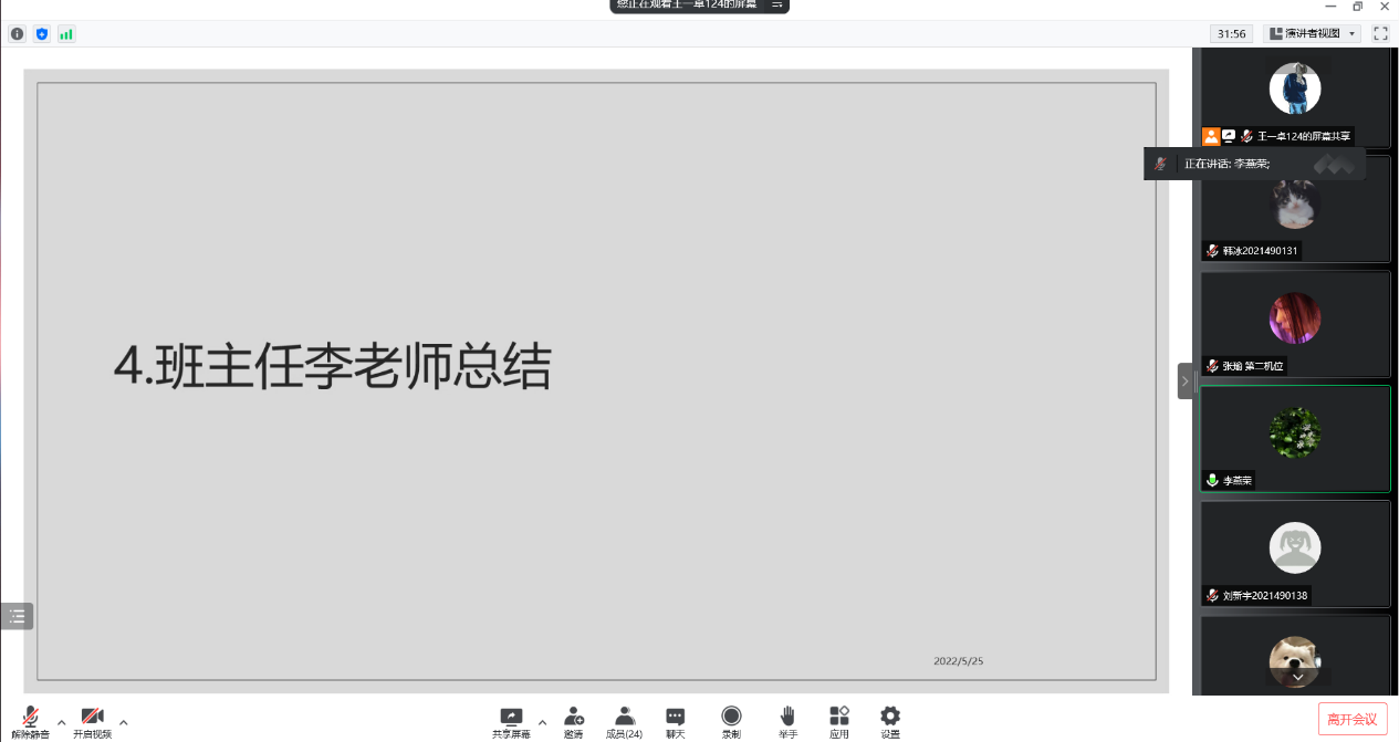 线上陪伴活动,得到专业和班级的积极响应。为缓解同学们在疫情下的心理压力、帮助和督促学生学习不松懈,2022年5月25日晚,2020级工商管理类5班举行“疫”起奋斗主题班会。班主任李燕荣老师和全体同学共同参会。