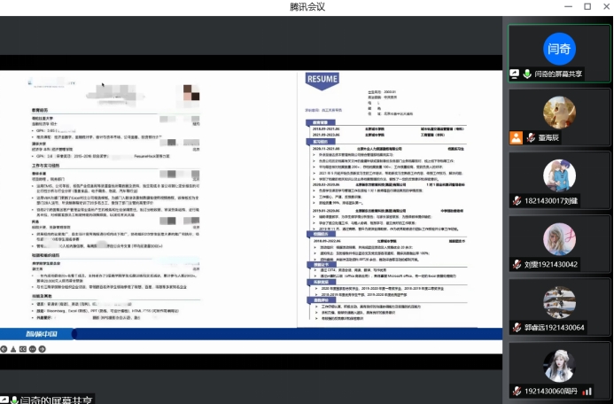 2017届校友,实践经验丰富,擅长产研领域人才招聘,对技术类、业务类岗位均有深入理解,讲座中,他从简历撰写、投递技巧和面试经验三方面,讲解了求职中的注意事项,并对同学们提交的简历进行了抽样点评,从HR角度提出筛选简历时的真实想法,分析了每份简历的优缺点,为同学们课后简历修改提供了宝贵的建议。