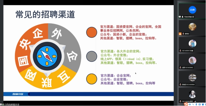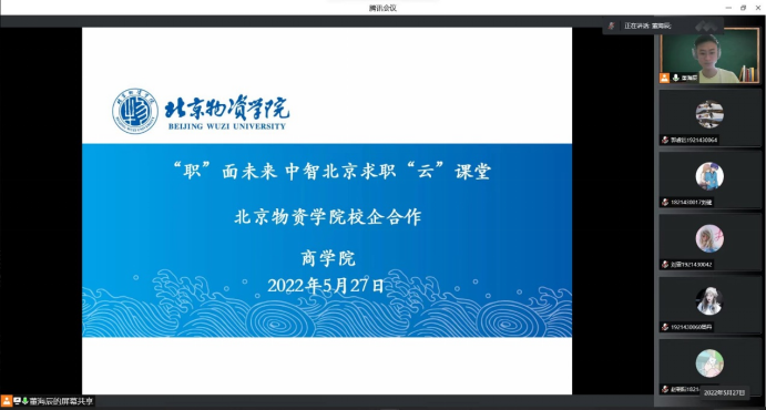 2022年5月27日上午,为深化校企合作,创新合作形式,中智集团(北京)招聘与校企发展部负责人韩怡然、运营主管赵紫怡、招聘顾问闫奇开展访企拓岗线上课堂,并带来题为“职”面未来——中智北京求职‘云’课堂讲座。本次讲座由成人电视