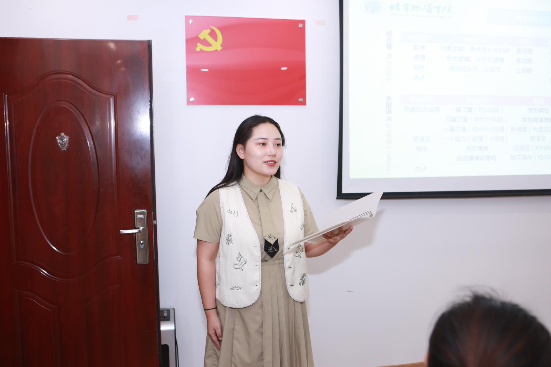 院长助理李玉珠副教授为备考生们送出真诚的寄语。她指出,千里之行,始于足下,行动力和执行力非常重要,只有行动起来,才会有收获。在考研过程中应风吹不动,雨打不摇, 出现懈怠思想的时候要警示自己抓紧行动起来,继续前进,要时刻铭记“生活太安逸了,工作和学习就会被生活所累”。 最后,李老师鼓励大家,要相信自己,坚持努力过,不后悔,唯有如此才能保持豁达的心态,助力考研成功。