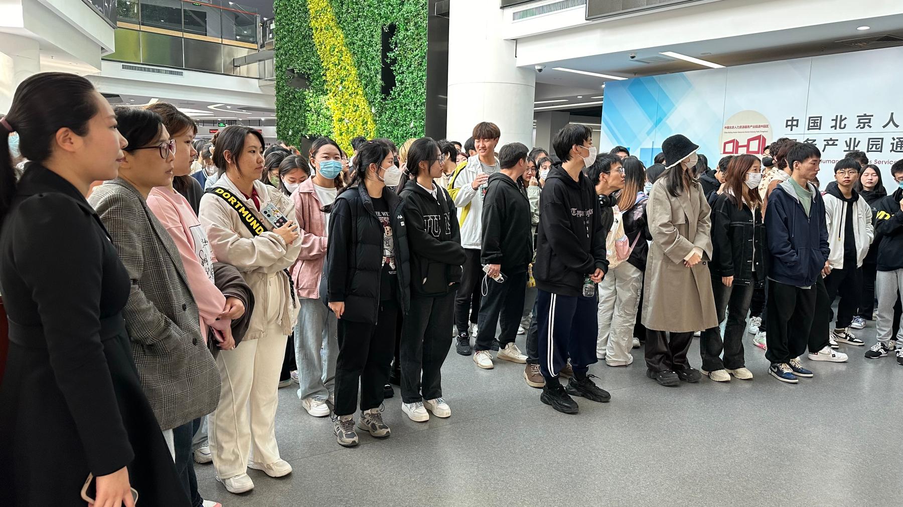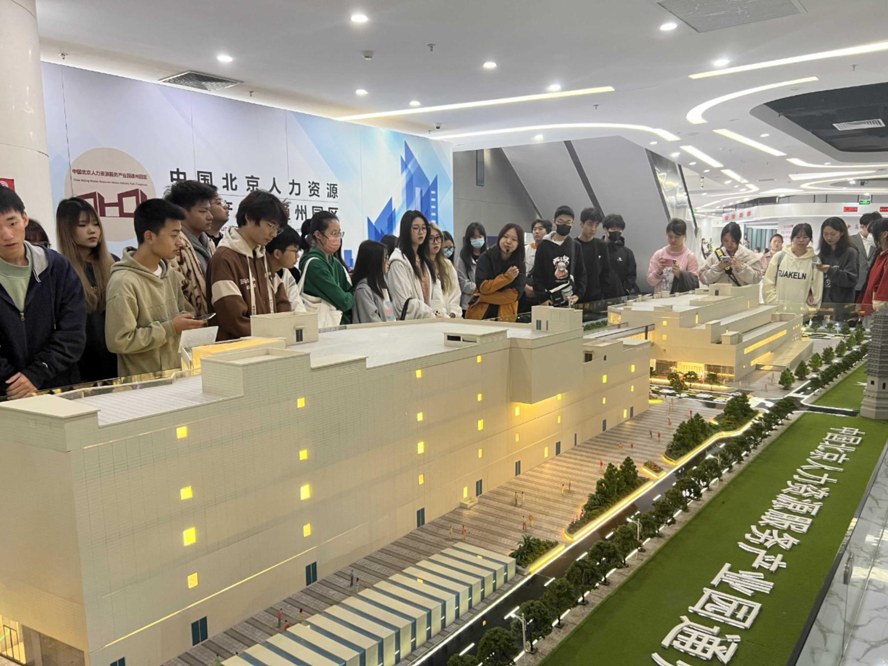 首先参观的是中国北京人力资源服务产业园通州园区,园区内的讲解员为同学们细致地讲解了园区的建设背景、功能定位、建设成效及发展目标等。