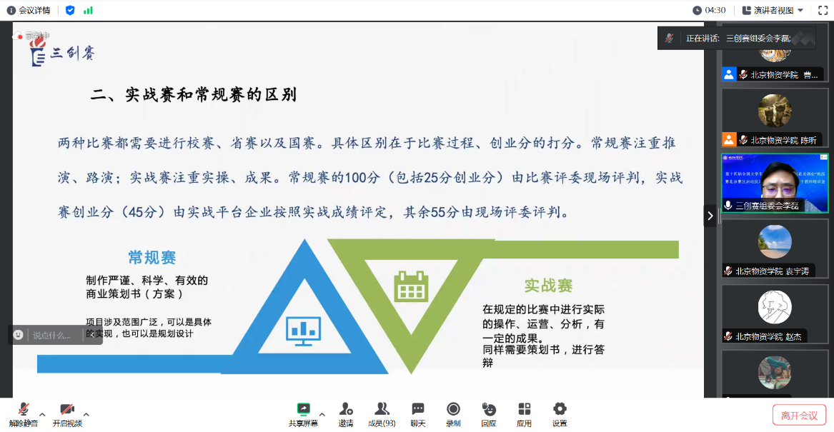 培训环节中,全国三创赛竞组委秘书处李磊介绍了实战赛的组织与开展情况;全国三创赛副秘书长、北京赛区竞组委秘书长李立威教授介绍了北京赛区承办情况与组织架构;三创赛北京赛区承办单位秘书处负责人、成人电视
