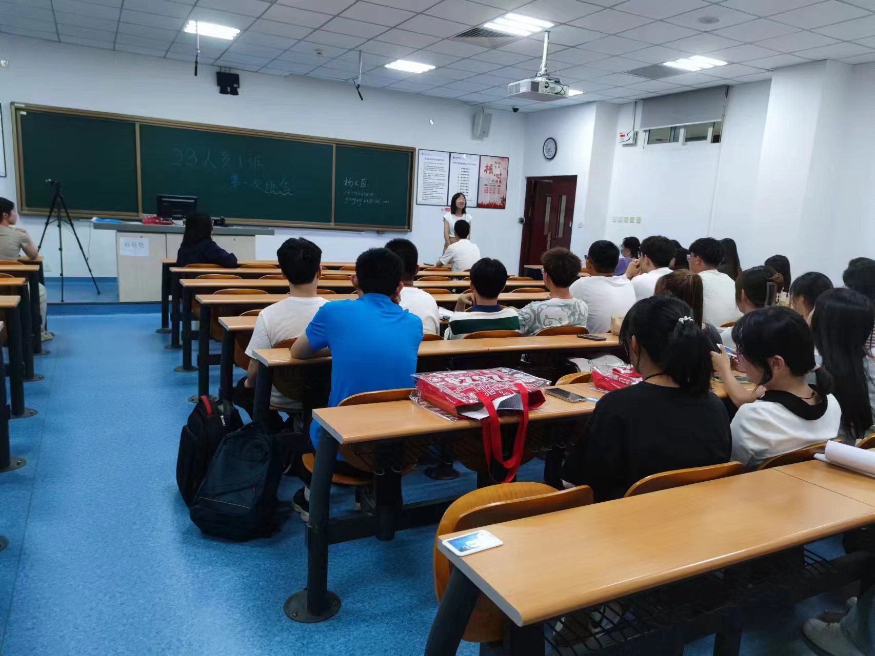 2023年10月19日18:00,人力资源管理专业学生第一党支部在二教402和403教室召开纵向新生班会,辅导员董海辰、23人资1班班主任杨文茵、23人资2班班主任李玲、班导以及全体新生出席。