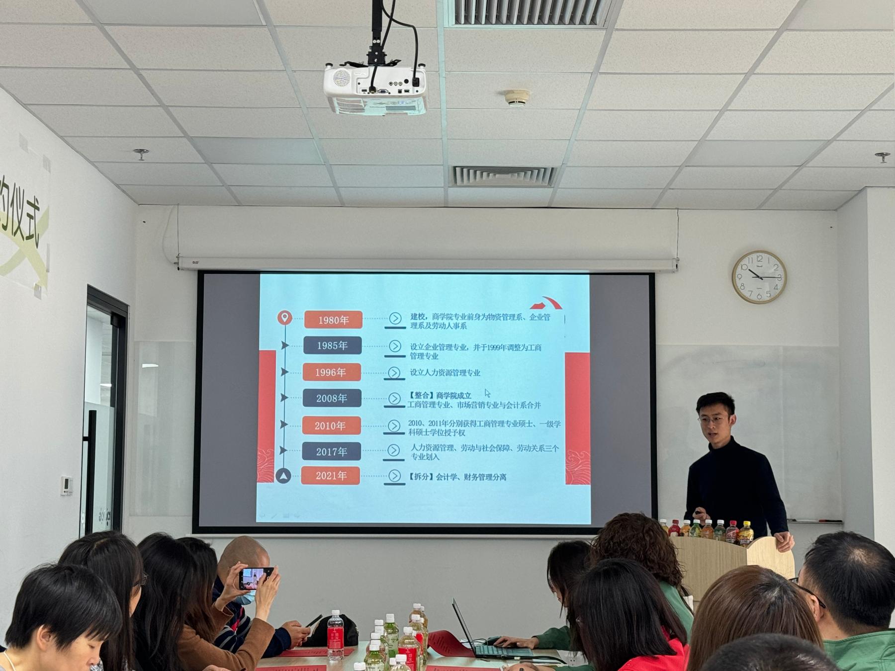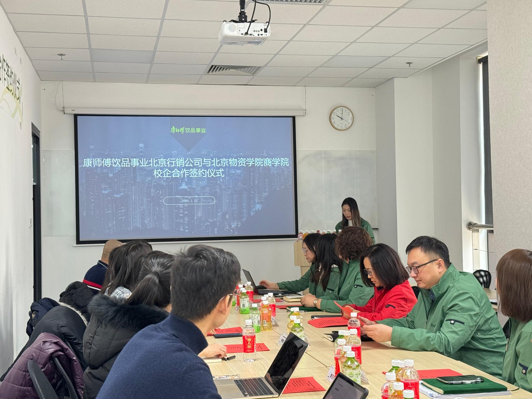 党委书记常娥、学院教学副院长李燕荣带队,市场营销教工党支部代表欧海鹰、张玉红,人力资源教工党支部代表沈晨光、李泊宁,辅导员董海辰、陈昕一行8人赴康师傅饮品事业北京行销公司参加访企拓岗校企合作交流会。康师傅控股北京地区办公室主任章丽君、康师傅饮品事业北京行销公司总经理何磊及各分部门负责人接洽并出席签约座谈,会议由公司人资处成人电视建设专员、2023届人力资源管理专业毕业生闫格主持。