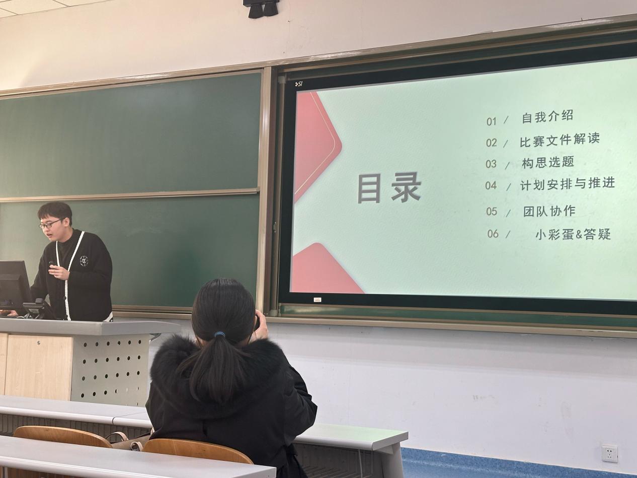 王奕硕同学全面解读了大创项目申报的文件,从构思选题到计划安排,再到团队协作,进行了深入讲解。他强调,选题需具有创新性和实用性;计划安排要细致周全,确保项目按时推进;团队协作则是成功的关键,需要成员间相互信任、默契配合。王奕硕同学的讲解让我们对大创项目申报有了更清晰的认识,也为我们接下来的申报工作提供了宝贵的指导。