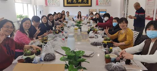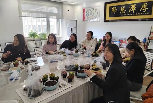 为女教工们组织了多肉种植DIY活动,共有20余名教师参加了活动。