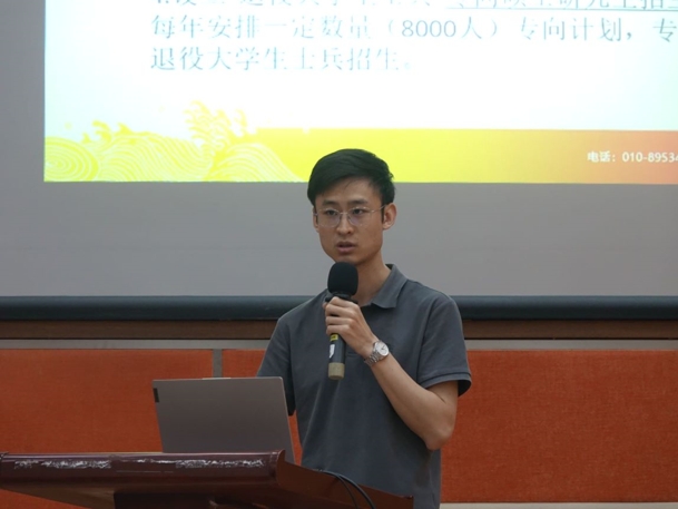 辅导员董海辰解读了国家对高校学生参军政策,勉励大家要铭记“请党放心、强国有我”誓言,做好学业学习和发展规划,做与时代同频共振,不懈奋斗的新一代青年。