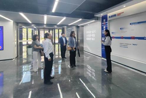 来访一行表示欢迎,并带领参观了中智科技集团一层展厅,就中智历史沿革与未来发展愿景等进行了详细介绍。