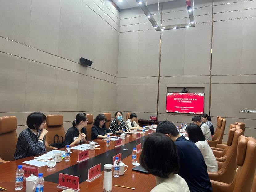 为了深化校企合作、促进产教高效融合,6月19日上午,通州区人力资源和社会保障局组织辖区内院校与企业对接,搭建企业与院校交流对接平台。通州区人力资源和社会保障局李军副局长、翟涛副局长、周真真科长和产业园服务中心负责人齐放出席座谈会,参与座谈会的企业有中智(北京)人力资源外包服务有限公司、北京外企人力资源服务有限公司通州分公司、智联智享(北京)信息技术有限公司和北京东方慧博企业管理服务有限公司,参加座谈会的院校有成人电视