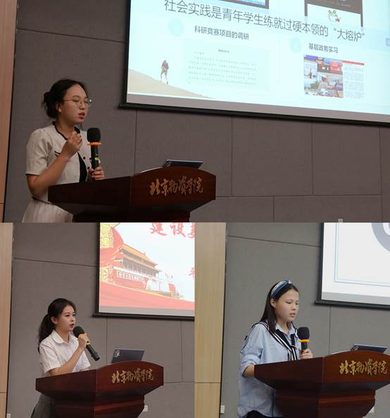往年获奖的三个优秀实践团队代表进行了经验分享。王怡景团队主要从为何选择参加社会实践,实践活动的具体内容以及活动收获等方面进行了分享;余雪怡团队从社会实践的类型,选题,如何开展,具体注意事项以及收获方面为同学们进行讲解;荀志超团队则在现场为同学们展示了现场答辩,由参会同学充当评委,并在答辩后请同学进行提问并作了详细解答。