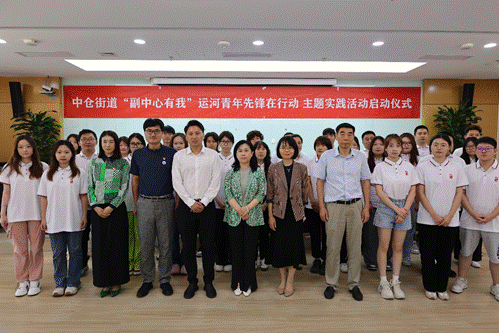 、法学院组织3支社会实践团队成员代表参加“副中心有我 运河青年先锋在行动”主题实践活动。团区委书记孙宏业、中仓街道党工委书记魏欣、运河商务区管委会党工委副书记车欣薇、马克思主义学院直属党支部书记张建宝等出席实践活动启动仪式。