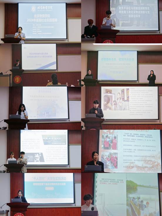 随后,各实践团队通过PPT展示、视频播放及现场汇报等形式,生动展示了他们在实践活动中的所见所闻、所学所感。从“青寻足迹”红色物流寻访专项,到“青心家国”弘扬爱国主义精神项目,再到“青振乡建”助力乡村全面振兴项目,“青扬文化”传承中华优秀文化项目,每一个项目都充满了学生们对社会的深刻洞察和对知识的热切追求。