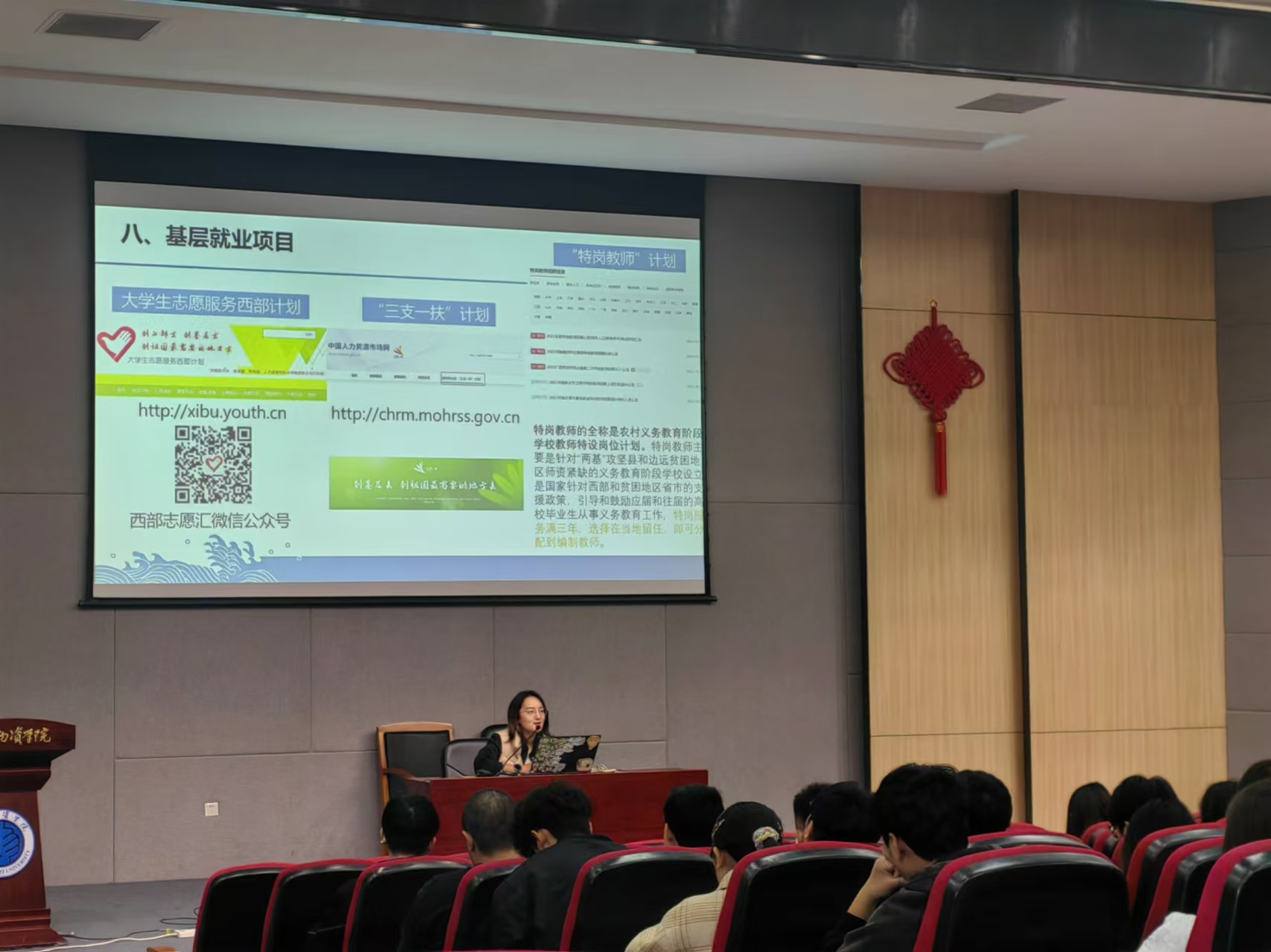 会议伊始,王雅琪对当前就业市场和就业途径进行全面解析,使学生们对于未来可能面临的机遇与挑战有了更为直观的认识。同时结合实际案例,介绍求职过程中常见的问题及其解决方案,如简历制作、面试技巧等关键环节,增强学生们的实操能力。