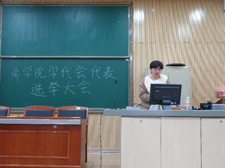 轮值主席周子城介绍此次大会的主要内容,并宣布大会开幕,依次介绍了本次候选人名单,同时,对候选人平时所获荣誉,为同学所做出的贡献等方面进行了详细的介绍。前期经过基层团支部选举、开会讨论,从四个年级中共选出34名候选人。本着公平公正的原则,参会的人员进行投票,本次28位优秀的同学成功当选学生代表。
