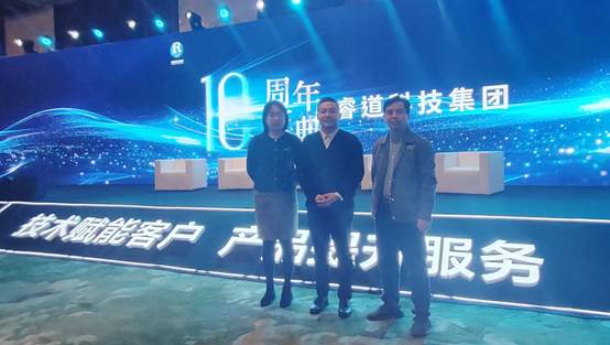 党委书记常娥、院长陈进、副书记陈霄英一行受邀参加睿道科技集团10周年庆典活动,并受到了睿道科技集团董事长张耀宏、董事姚伟旋等的热情接待。
