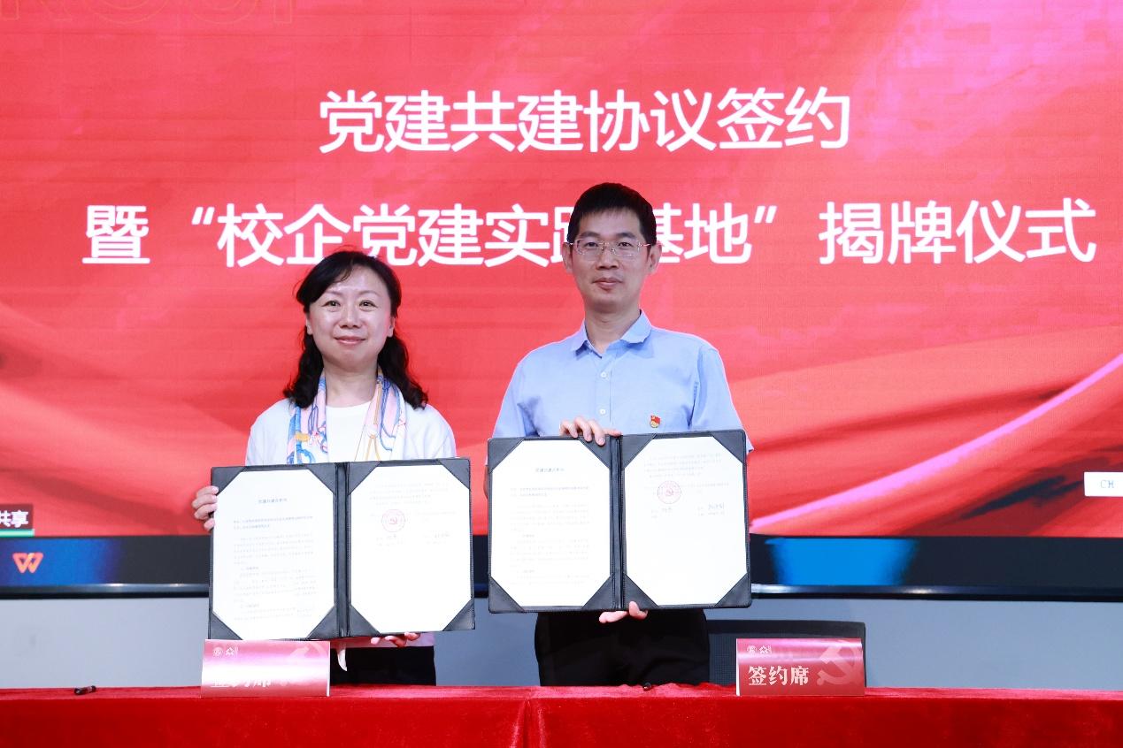 活动现场举行了庄重的《党建共建协议》签署仪式,劳动与社会保障专业教师党支部书记林原与众合云科集团党总支副书记、副总裁杨守国共同落笔,标志着双方正式建立党建共建合作关系。随后揭幕的“校企党建实践基地”,成为双方深化合作的重要载体。根据规划,校企党组织将以“组织联建、课题联研、人才联育”为核心抓手,着力打造集党建创新、学术研究、人才培养于一体的基层党建共同体,为高校与企业在新时代背景下的协同发展提供制度保障。