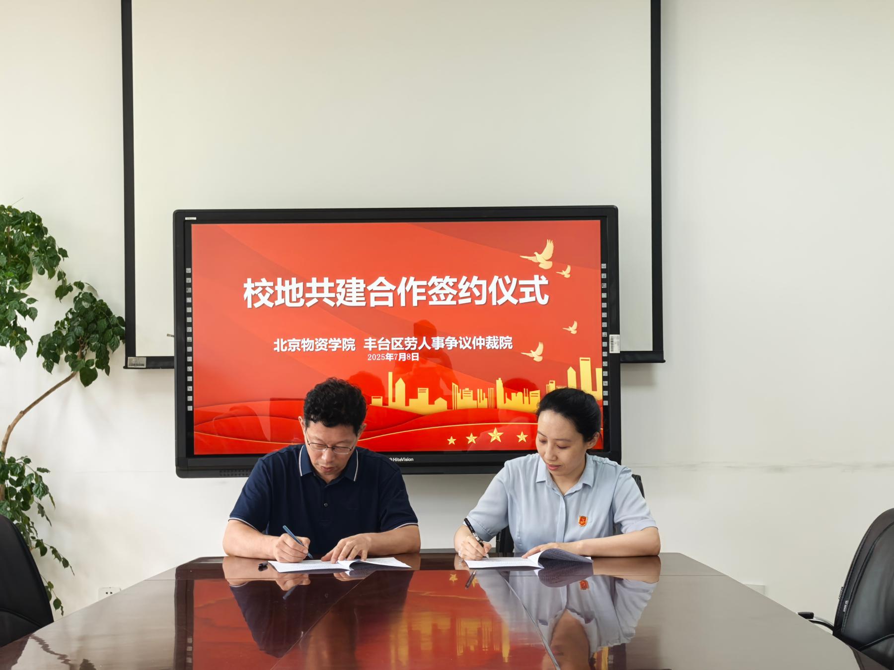 随后,解进强主任与丰台区劳动人事争议仲裁院代表共同签署了实习基地合作协议。根据协议,双方将在学生实习、案例共享、专题培训等方面开展长期合作,仲裁院将为成人电视