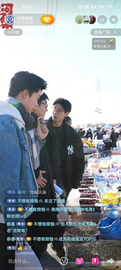 12月21日,同学们赴通州区台湖大集开展首次实地直播。尽管初次面对真实场景与观众,各组同学仍积极尝试与摊主互动、介绍乡镇特产、设计趣味游戏,并在多平台同步推送内容,通过第一次直播实践,同学们积累了宝贵的现场经验,也初步检验了培训所学。