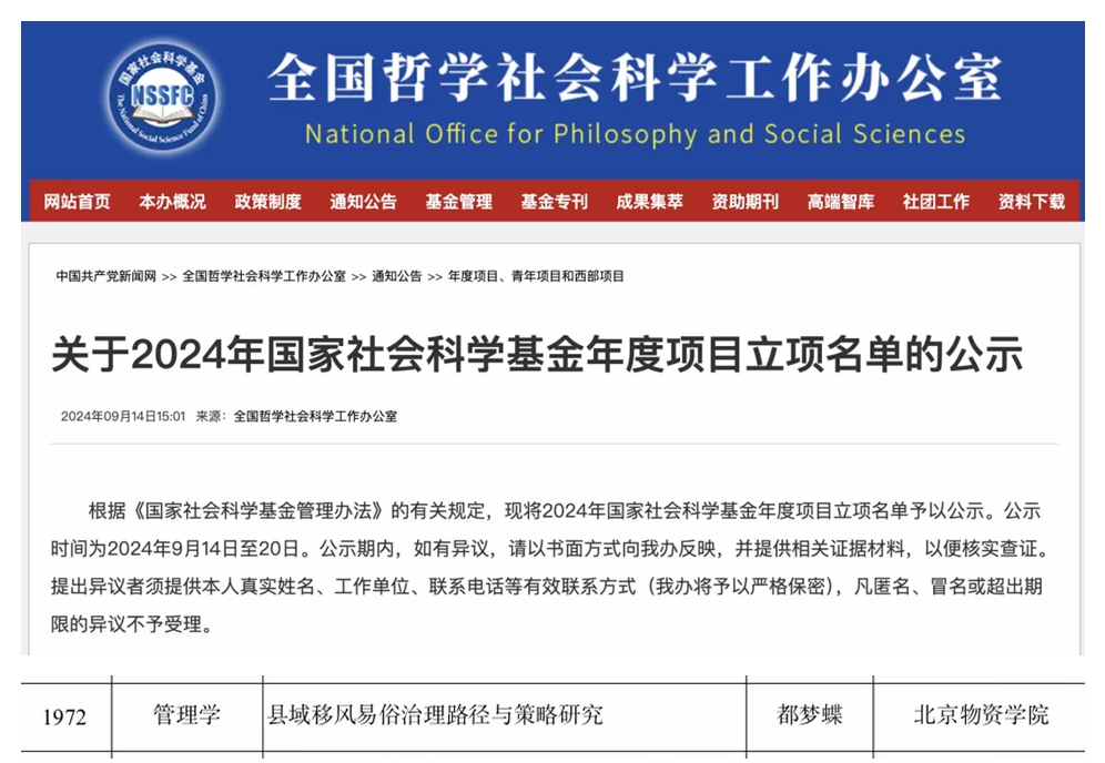 当前位置: 成人电视 >> 学科与科研 >> 成果动态 >> 正文 成果动态 喜报|成人电视 教师荣获2024年国家社会科学基金青年项目立项 2024-09-30 点击:[] 9月14日,全国哲学社会科学工作办公室官网发布《关于2024年国家社会科学基金年度项目立项名单的公示》,都梦蝶博士申报的“县域移风易俗治理路径与策略研究”课题荣获“年度青年项目”立项。 这是成人电视 在科研工作方面取得的重要成果,也是对我院教师辛勤付出与持续努力的高度认可。成人电视 将继续在学校科研处的指导下,完善科研政策,加强科研团队建设,优化科研环境,不断提升学科的创新能力和服务水平,取得更多具有影响力的研究成果,推动学院高质量发展。 撰稿/审核:李泊宁 图片:都梦蝶