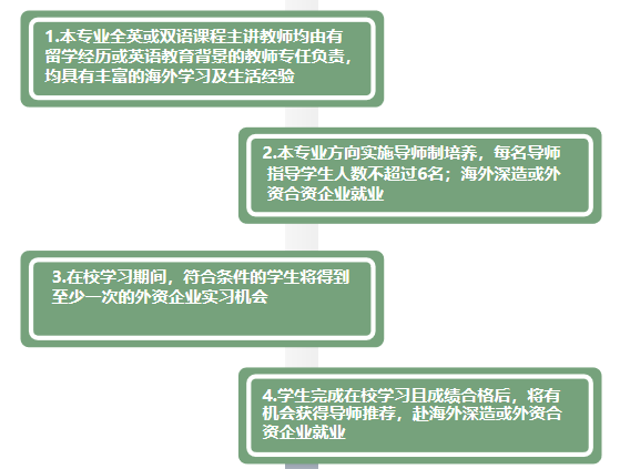 现如今,全球经济一体化,大的环境对于高质量的国际化人才需求越来越大,英语能力也越来越受到重视,通过相关课程的学习会使得大家对于英语的运用能力变得越来越自信,专业知识、英语能力、综合素养均得到显著提升。这对于考研或者是通过学校交流交换项目以及其他渠道完成在国内外高等院校的进一步深造都是非常有帮助的。