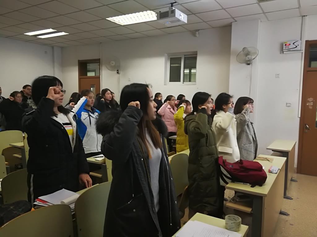 注会学生党支部于主教108室召开了2017年秋季学期预备党员转正会。本次转正会由注会学生党支部书记闫慧凝主持,九名正式党员及全体预备党员参加。