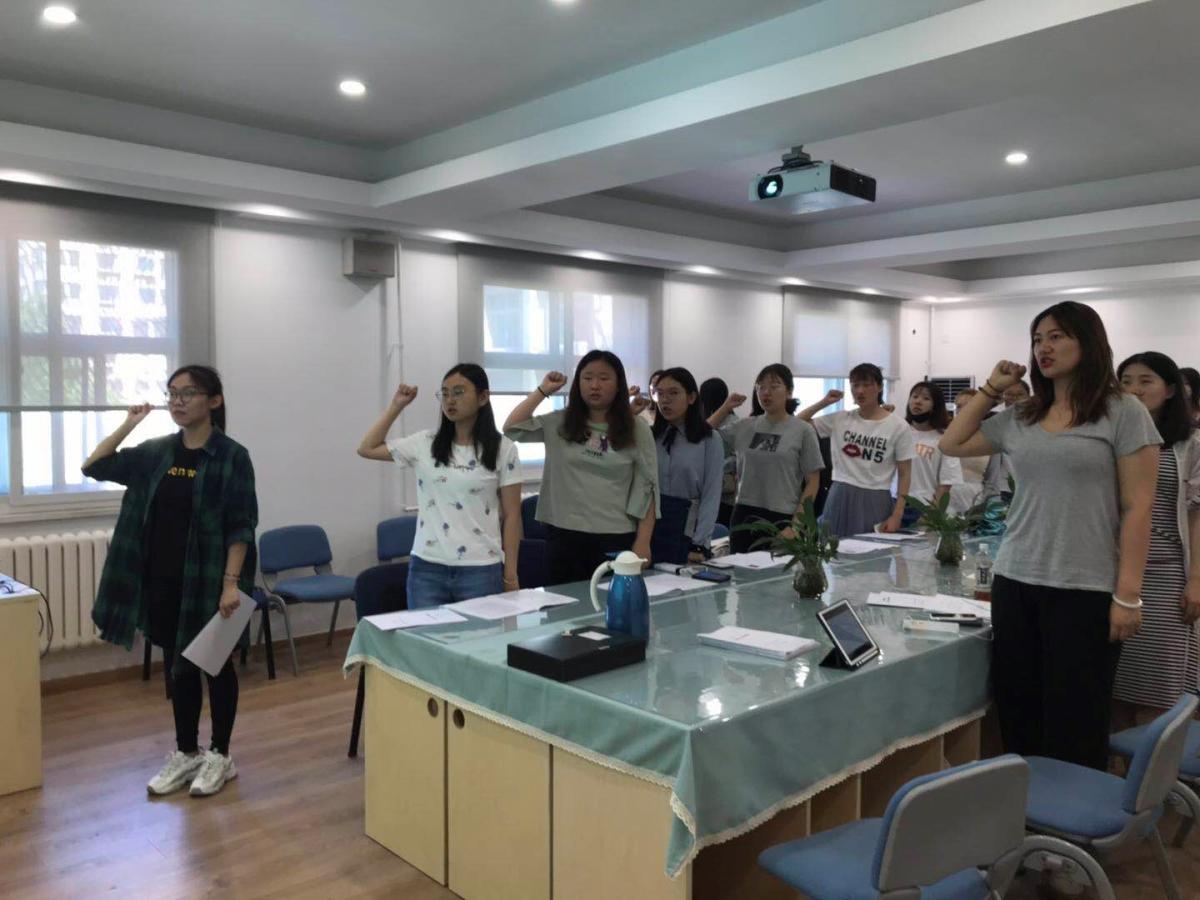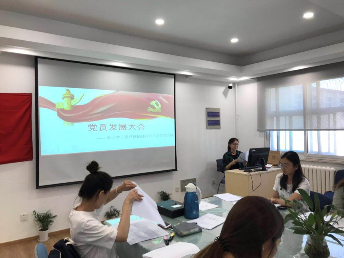 410教室召开了2019年春季学期预备党员发展会。会议讨论关于高婧、常舒铭、王家华、温思璇4名同志申请发展为预备党员的问题。本次发展会由注资学生党支部副书记赵宇涵主持,学生正式党员及预备党员共25人参加会议。