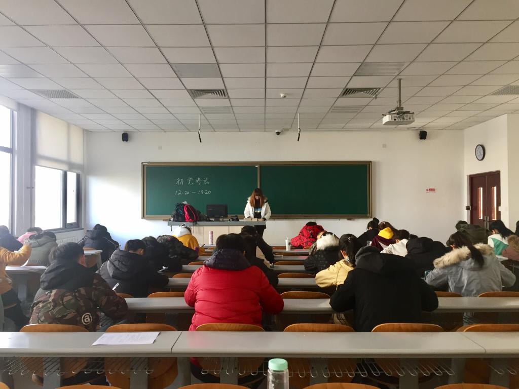 于二教二层进行了初级党课结业考试。2016级辅导员郑欣老师负责巡考,成人电视