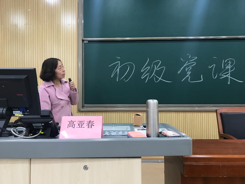 于第二教学楼第二报告厅开展初级党课。本次党课由马克思主义学院的高亚春老师主讲。