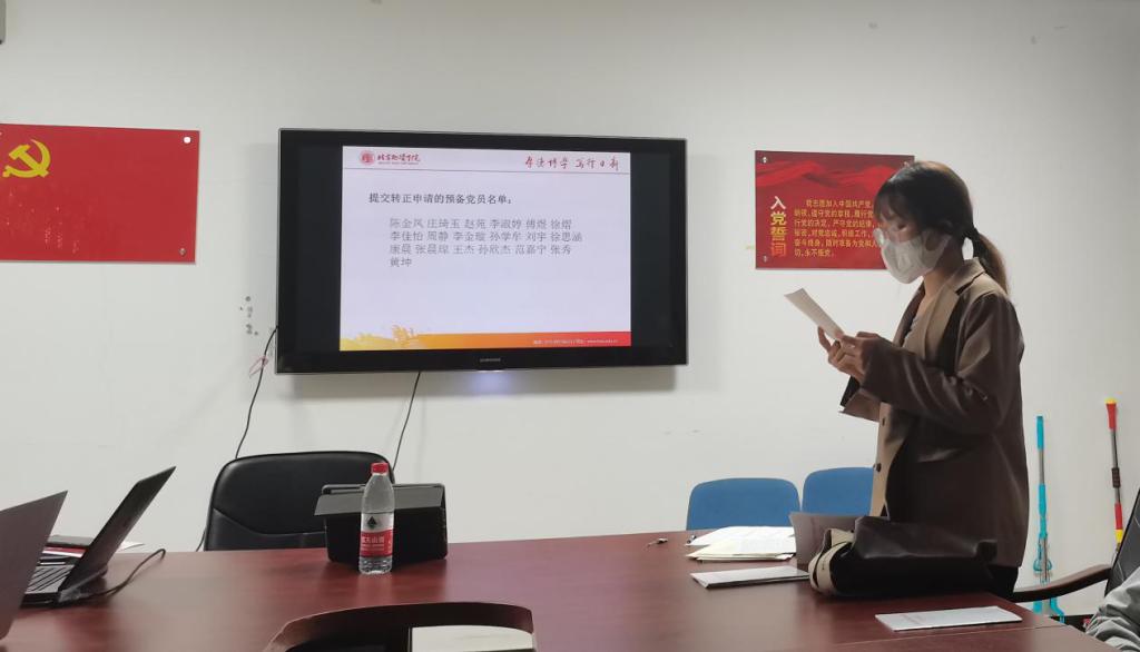 首先由支部书记董海辰宣布到场人数,明确可以召开会议。随后会议讨论了黄坤、张晨琼、张秀、范嘉宁、康晨、孙欣杰、王杰、徐思涵、李金璇、周静、孙学牟、陈金凤、刘宇、庄琦钰、李佳怡、李淑婷、徐熠、傅煜、赵苑共19名预备党员申请转为正式党员的问题。依次宣读转正申请,汇报对党的认识、在预备期的思想、工作、生活表现情况及今后努力的方向。每一名预备党员宣读结束,其入党介绍人、与会其他党员对预备党员是否符合转正条件发表意见。随后,与会党员充分讨论并发表意见。