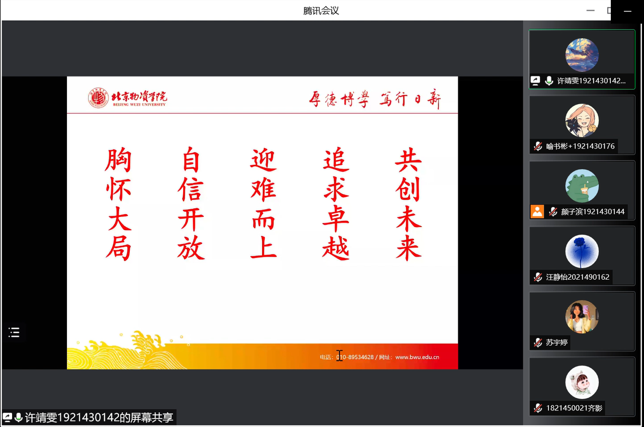 人力资源管理学生第一党支部在腾讯会议线上召开了五月的理论学习会。本次座谈会由人资学生第一党支部书记董海辰老师主持,学生第一党支部全员参与。
