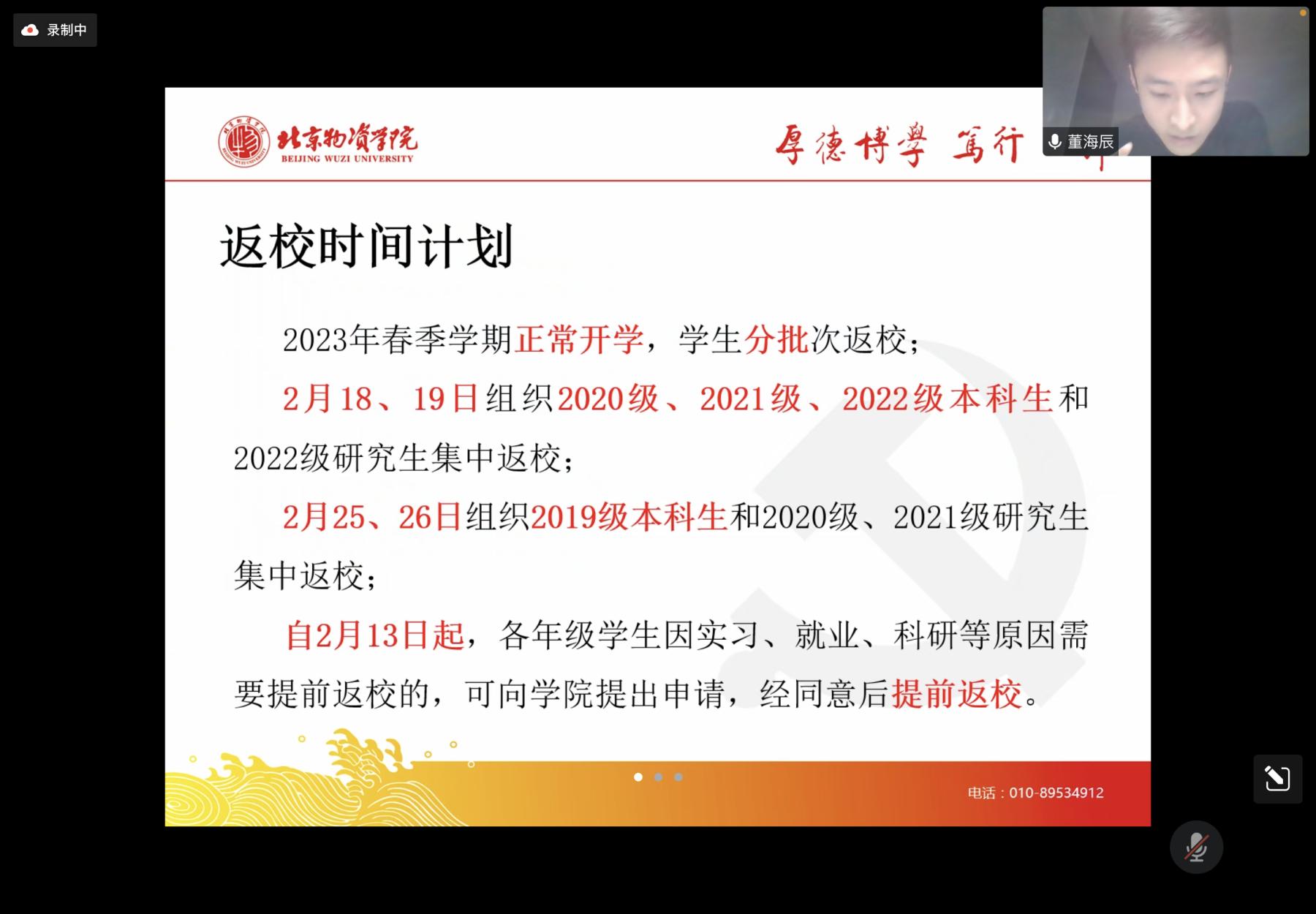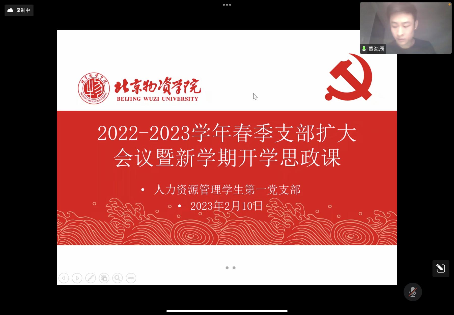 人力资源管理学生第一党支部学生干部在线上召开了新学期开学前大思政课。本次会议主题是关于2022-2023学年春季学期开学前教育。会议由人资学生第一党支部书记董海辰老师主持,学生第一党支部全体参与。