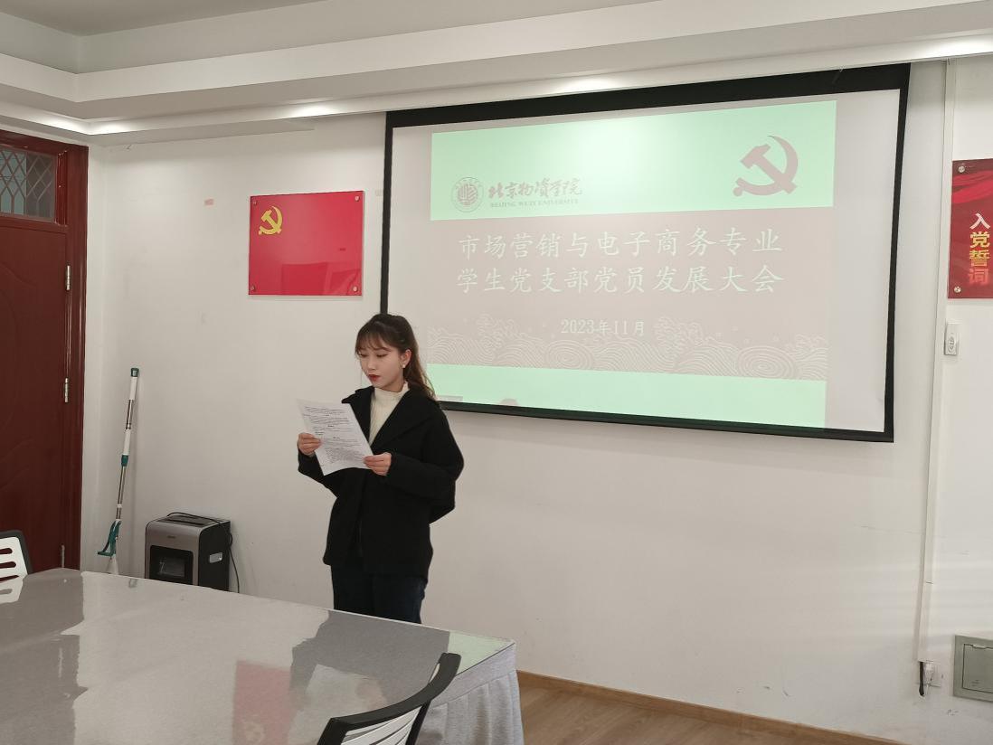 本次市场营销与电子商务专业学生党支部党员发展大会的成功召开,进一步壮大了支部力量,为支部建设奠定了坚实的基础,进一步激发了我支部党员的热情和责任感。希望支部全体同志在今后的工作、学习和生活中严格要求自己,不断提高政治觉悟和党性修养,不忘入党初心,履行党员义务,增强为群众、为社会服务的本领,争做一名合格的共产党员。