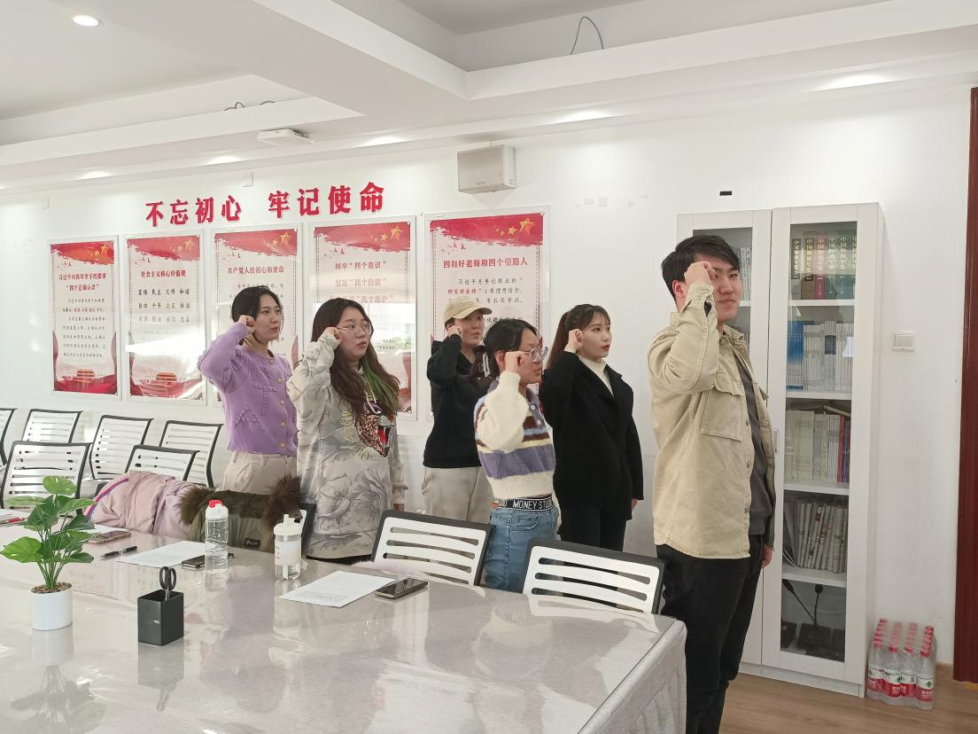 最后,由支部书记陈昕同志带领郝一博、李心怡、孙维亦、陈钰然、纪洁共5名预备党员进行入党宣誓仪式。“我宣誓:我志愿加入中国共产党,拥护党的纲领,遵守党的章程,履行党员义务,执行党的决定,严守党的纪律,保守党的秘密,对党忠诚,积极工作,为共产主义奋斗终身,随时准备为党和人民牺牲一切,永不叛党。宣誓人:......”