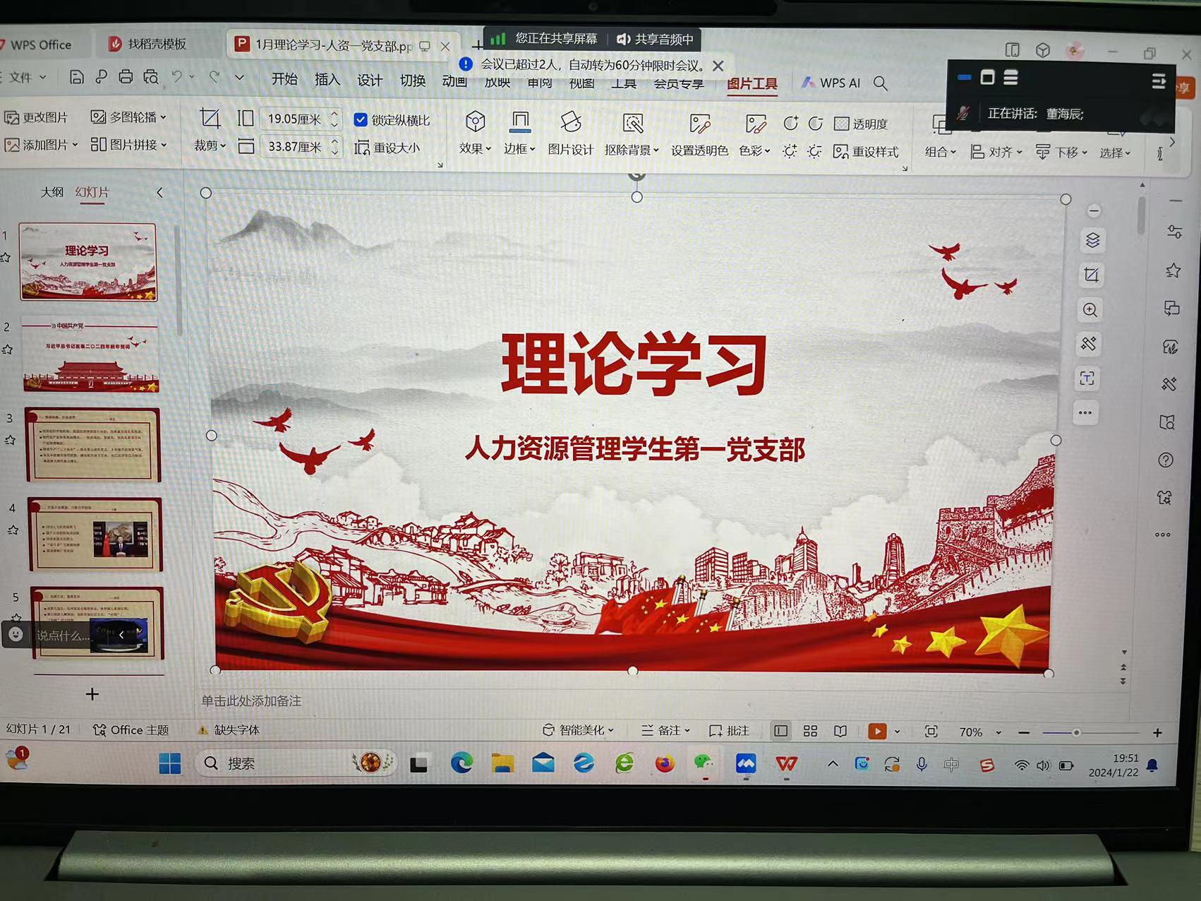 2024年1月22日19:00,党支部组织全体党员在线上召开理论学习会。此次会议由人力资源管理专业学生第一党支部书记董海辰同志主持。本次理论学习会主要围绕深入学习深入学习中央经济工作会议精神及相关内容。