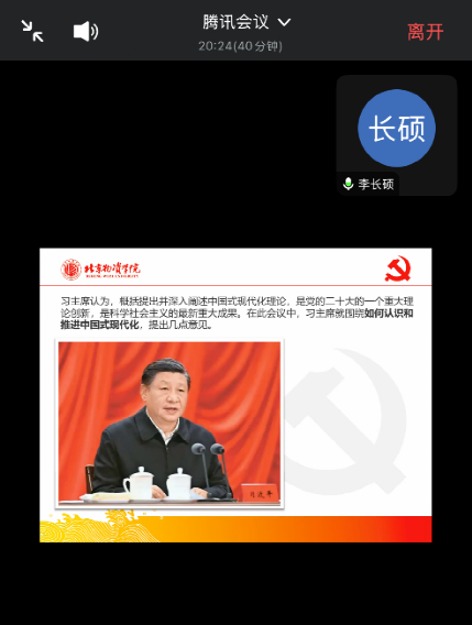 之后,党员们认真学习了习近平主席对于如何以中国式现代化推进强国建设、民族复兴伟业的发言,了解了要坚持中国式现代化这一重大成果,要坚定党的领导,要维护中国特色,开创人类文明新形态、处理好顶层设计与实践探索等关系、神话理论研究和实践探索。在这一过程中,党员需要在国家主流发展的浪潮中起到先锋模范作用。